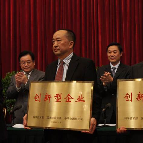 6月9日,國家技術(shù)創(chuàng )新工程四川省試點(diǎn)啟動(dòng)大會(huì )在成都金牛壩國賓館隆重召開(kāi)。省委書(shū)記劉奇葆向畜科公司鄺聲耀董事長(cháng)授予國家創(chuàng )新型企業(yè)匾牌及證書(shū)。