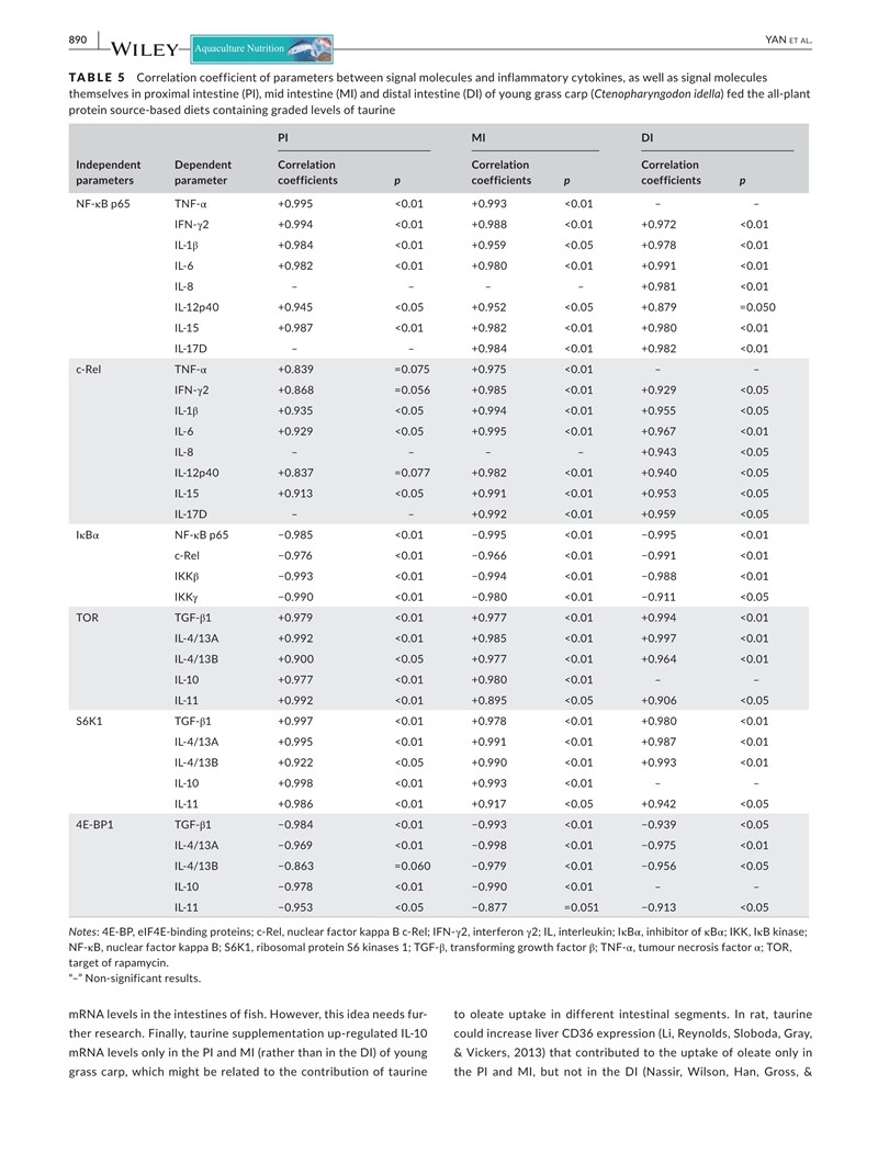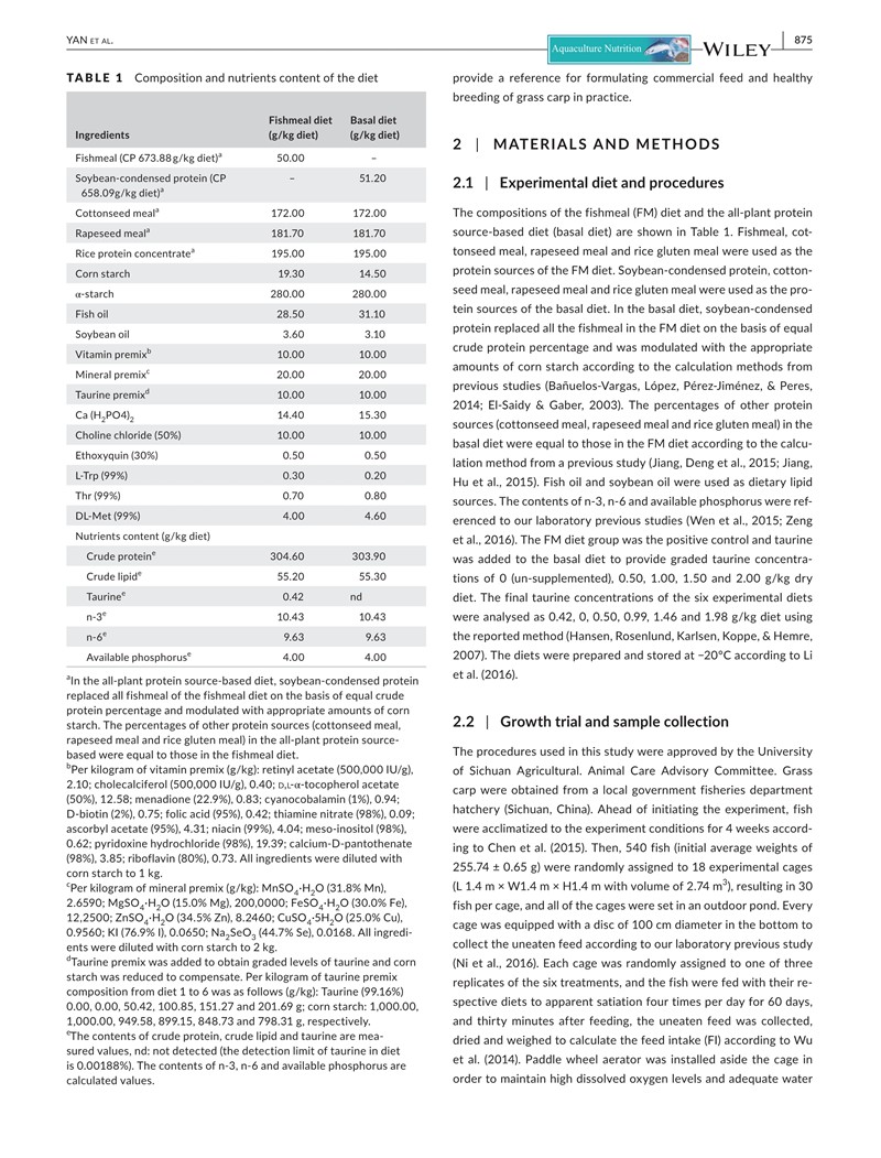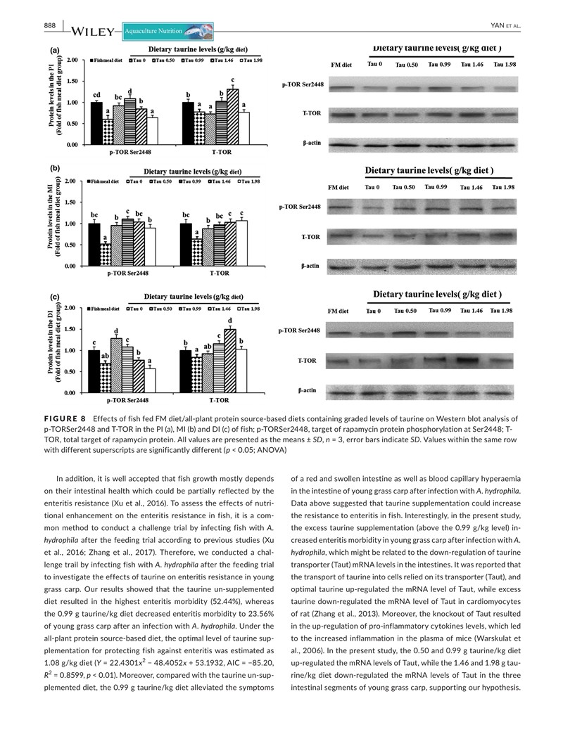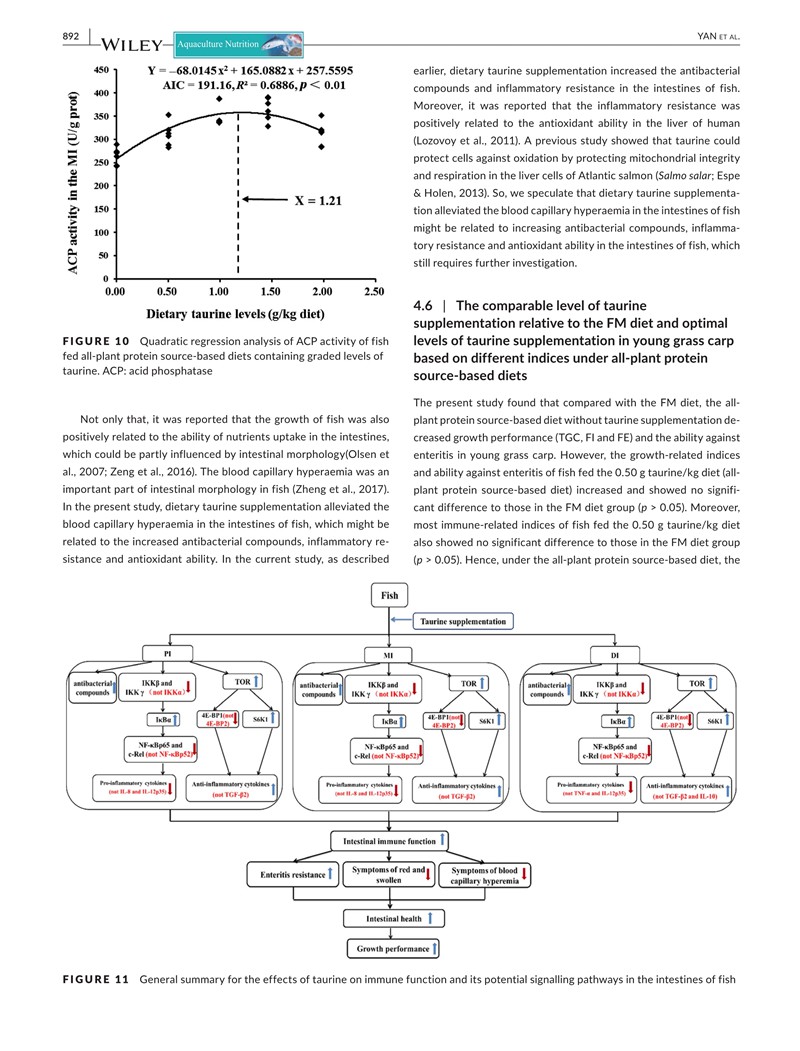 Dietary taurine supplementation to a plant protein source‐based diet improved the growth and intestinal immune function of young grass carp (Ctenopharyngodon idella)